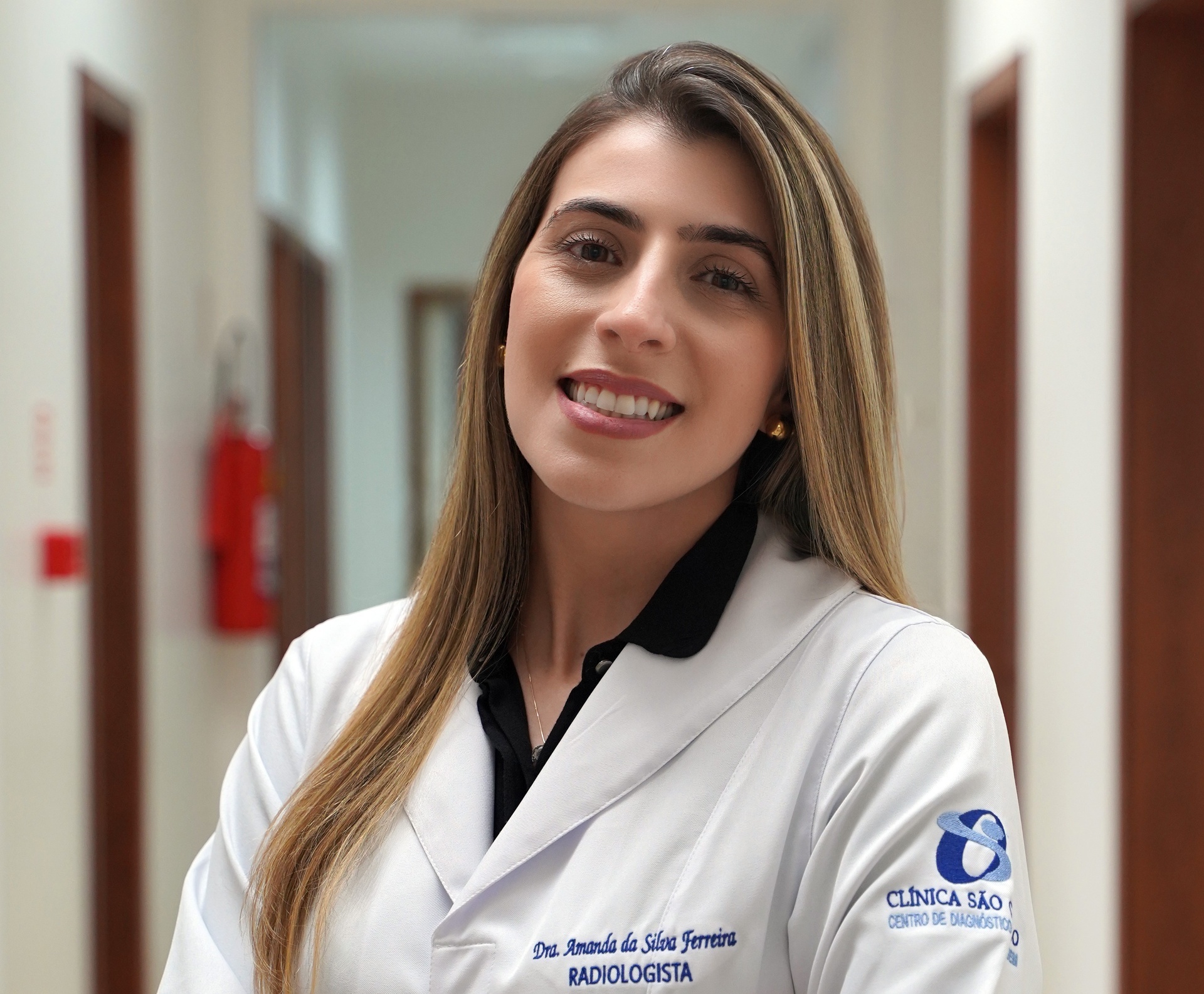 Dra. Amanda da Silva Ferreira CRM/MT 16627 - RQE/MT 8394. Radiologista Título de especialista em diagnóstico por imagem.